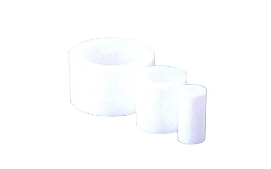 PTFE純模壓筒成型方法基本上包括混料、預(yù)成型、燒結(jié)、冷卻四步組成。預(yù)成型是將ptfe粉末均勻加入模具內(nèi),在常溫下加壓成密實的預(yù)成型品(即毛坯);燒結(jié)是將預(yù)成型品加熱到熔點以上,冷卻是從燒結(jié)溫度降到室溫的過程。有些ptfe是在熔點溫度以上一次加壓而成,這種成型模具,叫做熱壓模,與此對應(yīng)的PTFE的模具叫冷壓模。ptfe模壓時應(yīng)注意壓縮比(一殷PTFE為4-6)和成型收縮率(一般PTFE為百分之2.6-百分之4.5)對制品的影響。原料用懸浮法聚合樹脂,粒徑為20-500微米的松軟細(xì)粉末。壓制過程中須“放氣”,預(yù)成型壓力為17-35兆帕,保壓時間根據(jù)毛坯厚度而定,如100毫米厚的毛坯,應(yīng)保壓15分鐘。